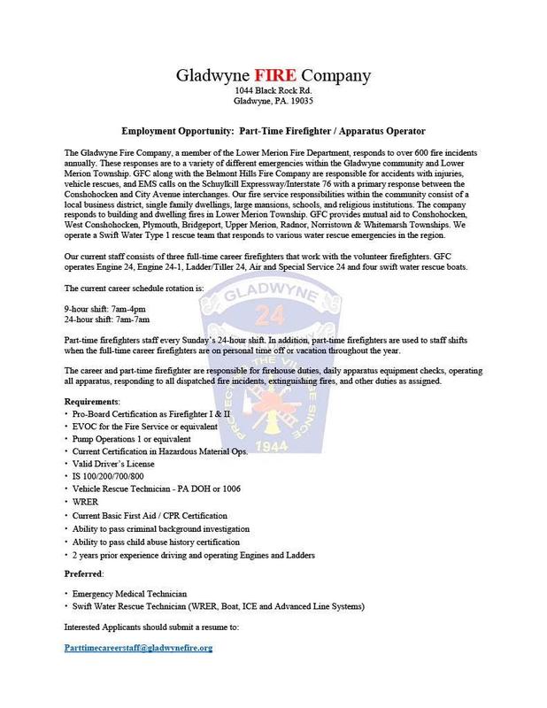 | Gladwyne Fire Company is looking to bolster its part time firefighter list.