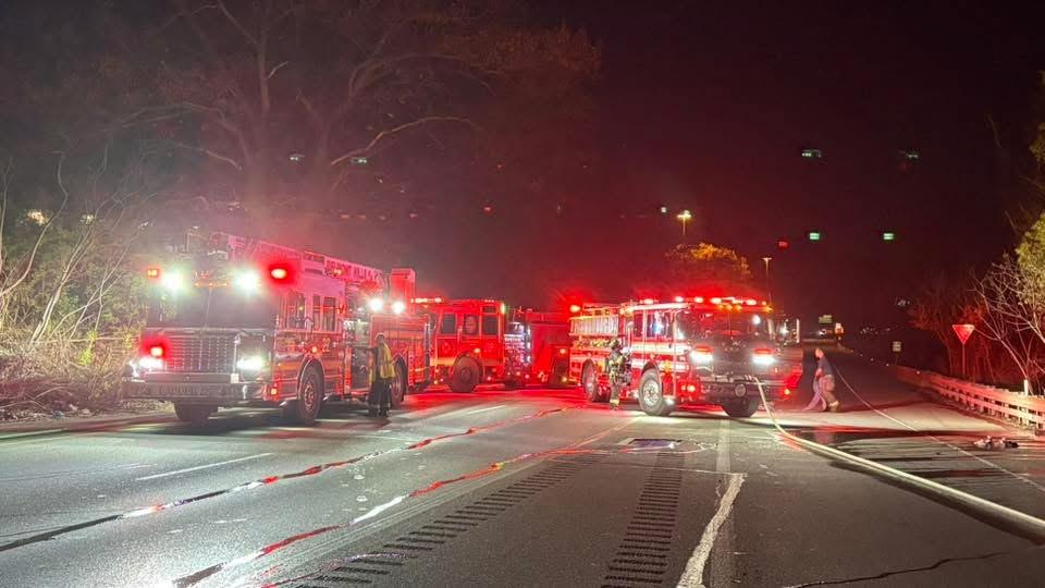 Ladder 22 and Engine 24 each deployed a hand line and extinguished the fire. Engine 24-1 and Pipeline 28 were also on scene and supplied water to both Ladder 22 and Engine 24. The Westbound lanes of the expressway were closed for just under one hour while the fire was extinguished.